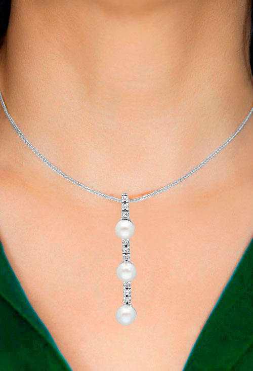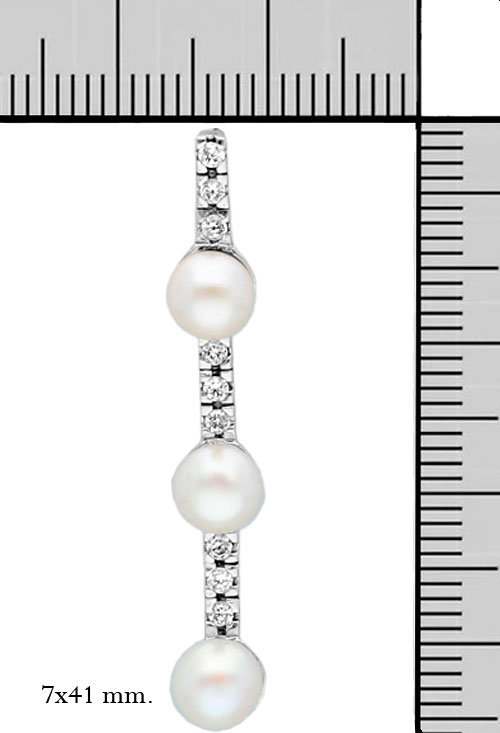 Colgante plata ley 925 milésimas con circonitas y perlas cultivadas, modelo galería vertical de circonitas con 3 perlas cultivadas de 7 milímetros separadas entre sí, mide 7×41 milímetros y pesa 3 gramos, original modelo para lucir en los momentos más especiales, puedes llevarlo colgando de una cadena de 40 o 45 centímetros a modo de gargantilla, terminado con baño de rodio esta incluido en la clase colgantes de plata con piedras y además las últimas unidades las ofrecemos a un precio especial de destockaje que solo encuentras en nuestro outlet de joyería.