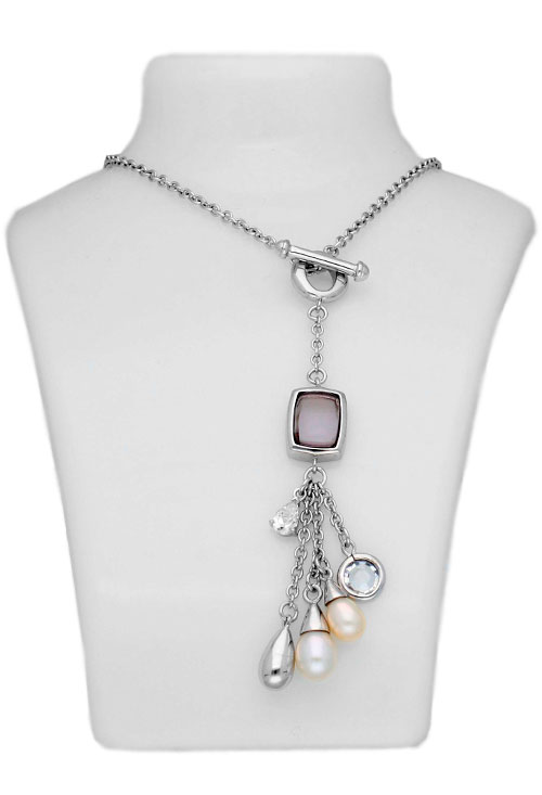Gargantilla plata ley 925 milésimas cadena fina de eslabones forzados con cierre de corbata y motivo a modo de racimo del que cuelgan perlas, original diseño con el que te sentiras super favorecida, es una preciosa joya que lucira explendida en tu cuello y que puedes comprar al precio más barato en nuestra joyería online.