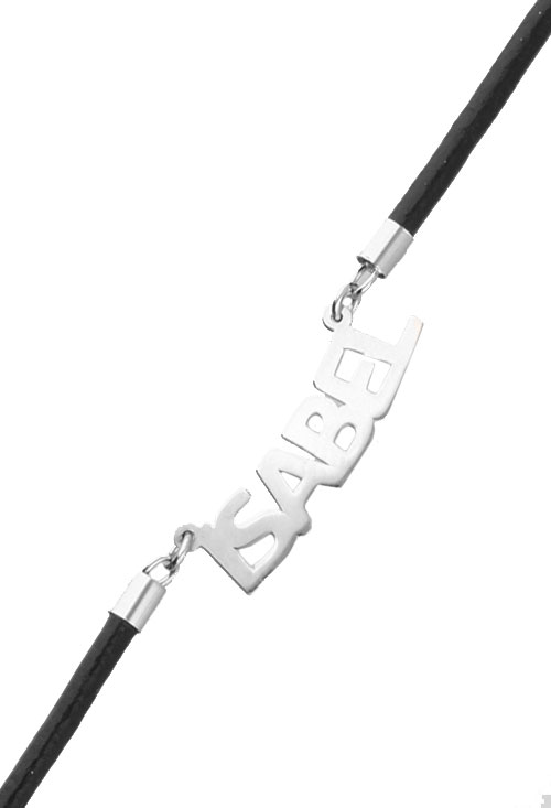 Gargantilla plata y cuero nombre Isabel, solo nos queda una unidad, el taller que las fabricaba cerro durante la pandemia y ya no hacemos reposiciones, solo quedan unos pocos nombres sueltos entre ellos este que aquí nos ocupa, Isabel, realizado en plata de ley esta sujeto mediante casquillas cilíndricas a un cordón de cuero que se cierra mediante terminales de plata de ley que permite hacerlo en varias medidas diferentes, el cierre es un mosquetón cómodo de poner y quitar y muy seguro.