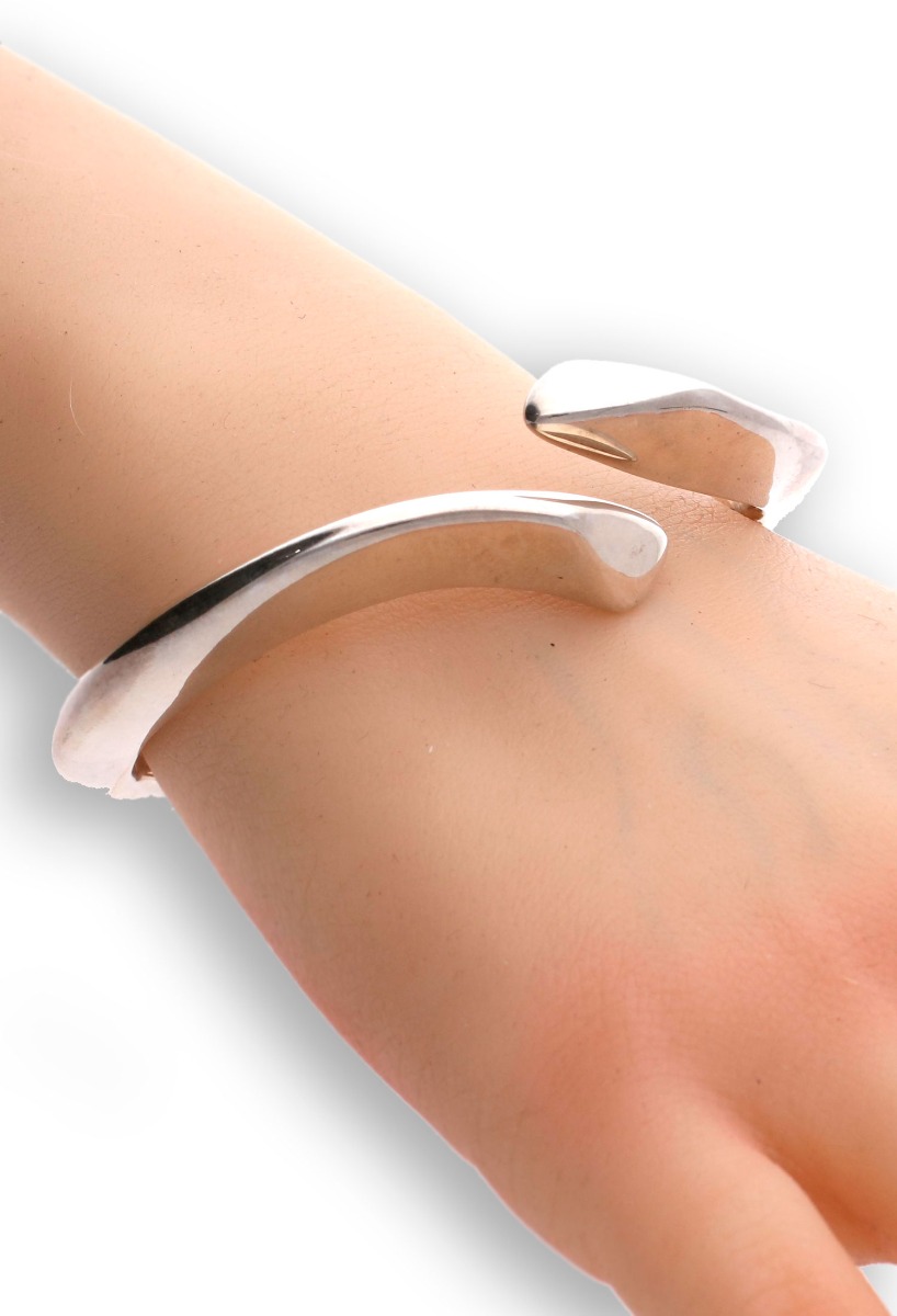Pulsera de aro rígida plata de ley, preciosa pulsera para sentirte especial y diferente, imaginala en tu muñeca en esa ocasión en la que realmente quieres ser protagonista, una forma abierta en disminución como tu y yo divergente, con sistema de muelle en su parte inferior para poder abrir y cerrar fácilmente y llevarla con seguridad, un bonito diseño actual muy en consonancia con los looks más modernos y desenfadados.