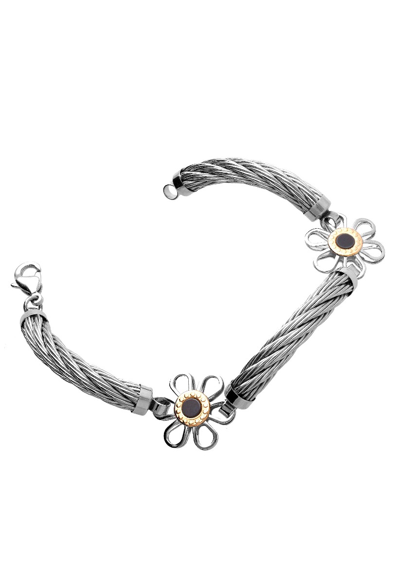 Pulseras acero y oro margaritas 094_61397-PUO-N