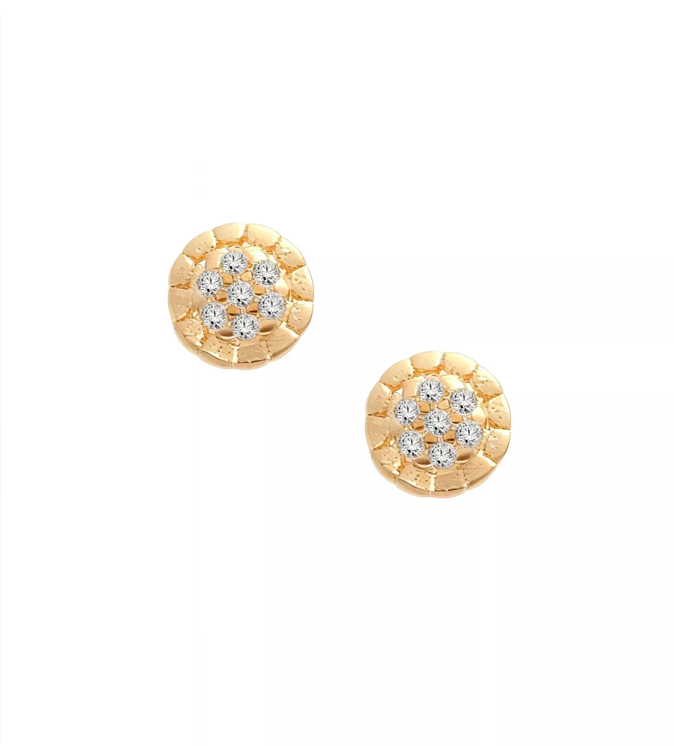 ¡Descubre la ternura de los pendientes de bebé “Redondel de Amor”! Estos delicados pendientes de bebé en oro amarillo de 18K están adornados con brillantes circonitas en un diseño circular. Su cierre de tuerca con tope ofrece la máxima seguridad y comodidad para los más pequeños. Una joya perfecta para proteger y embellecer a tu bebé. ¡No pierdas esta oportunidad!