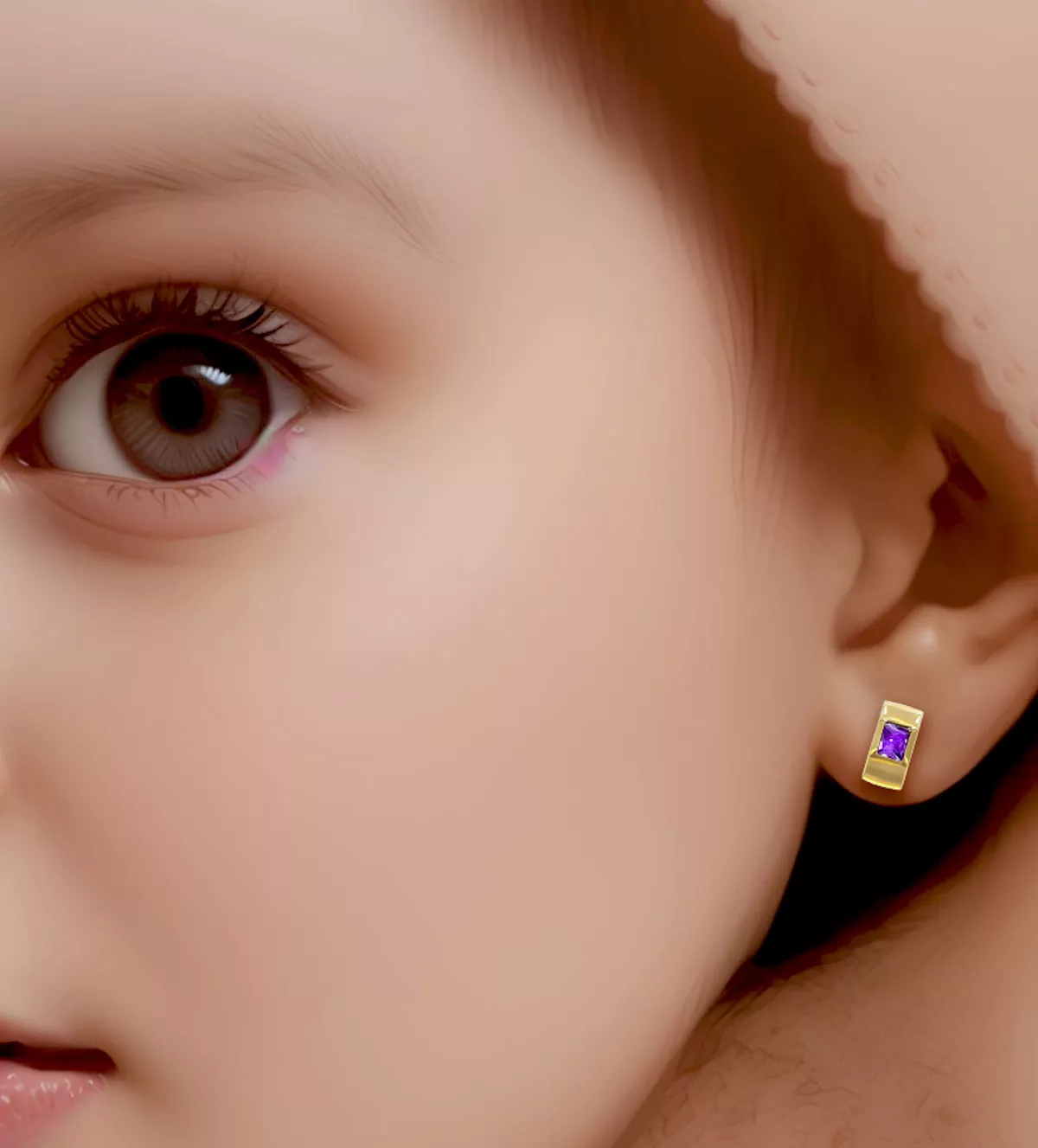 Una de las características más destacadas de estos pendientes de oro es su cierre de palillo de rosca con tuercas de tope, que proporciona seguridad y tranquilidad a los padres. Este cierre evita que los pendientes se desprendan fácilmente, lo que es especialmente importante para las niñas pequeñas que son activas y están en constante movimiento. Además, la amatista enrasada ofrece un acabado suave, minimizando el riesgo de enganches o incomodidad, lo cual es crucial para las niñas que usan los pendientes durante largos períodos.
