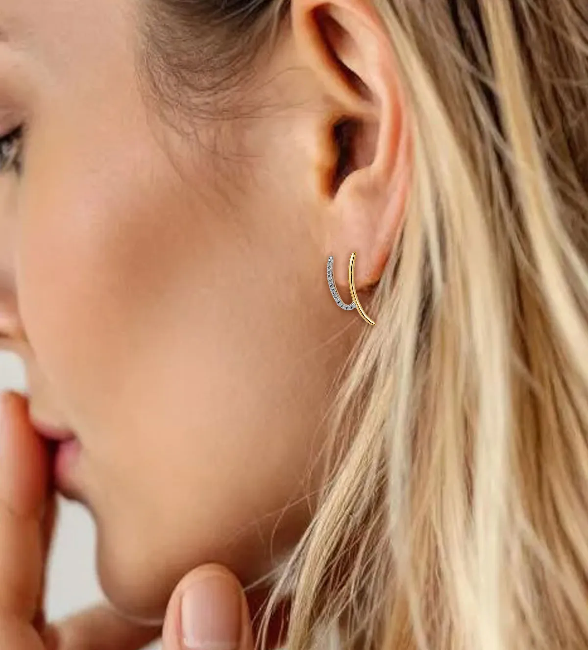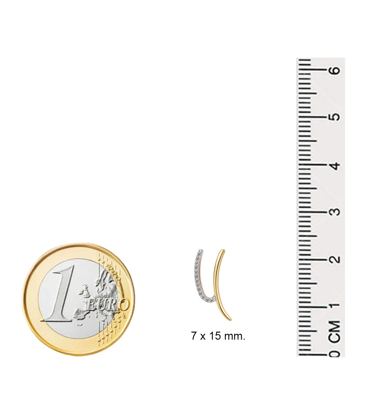 Su original forma en Y griega aporta un aire vanguardista, ideal para mujeres que buscan destacar con una joya moderna y refinada. El contraste entre el oro amarillo y el blanco resalta la forma fluida de la pieza, mientras que los brillantes añaden un toque de glamour sin resultar excesivo. Son pendientes que combinan arte, equilibrio y estilo.