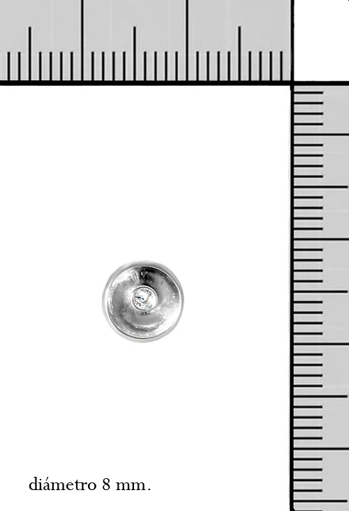 Pendientes tipo dormilona oro blanco 18 kilates, forma circular concava con un diamante talla brillante engastado en centro, palillos o pernios y sistemas de presión, mide 8 milímetros de diámetro y el par pesa 1,70 gramos.