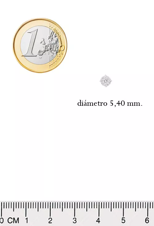 Cada pendiente esta formado por un brillante central de 0,09 quilates rodeado por 9 de menor tamaño que pesan 0,108 quilates todos son color H y pureza SI.