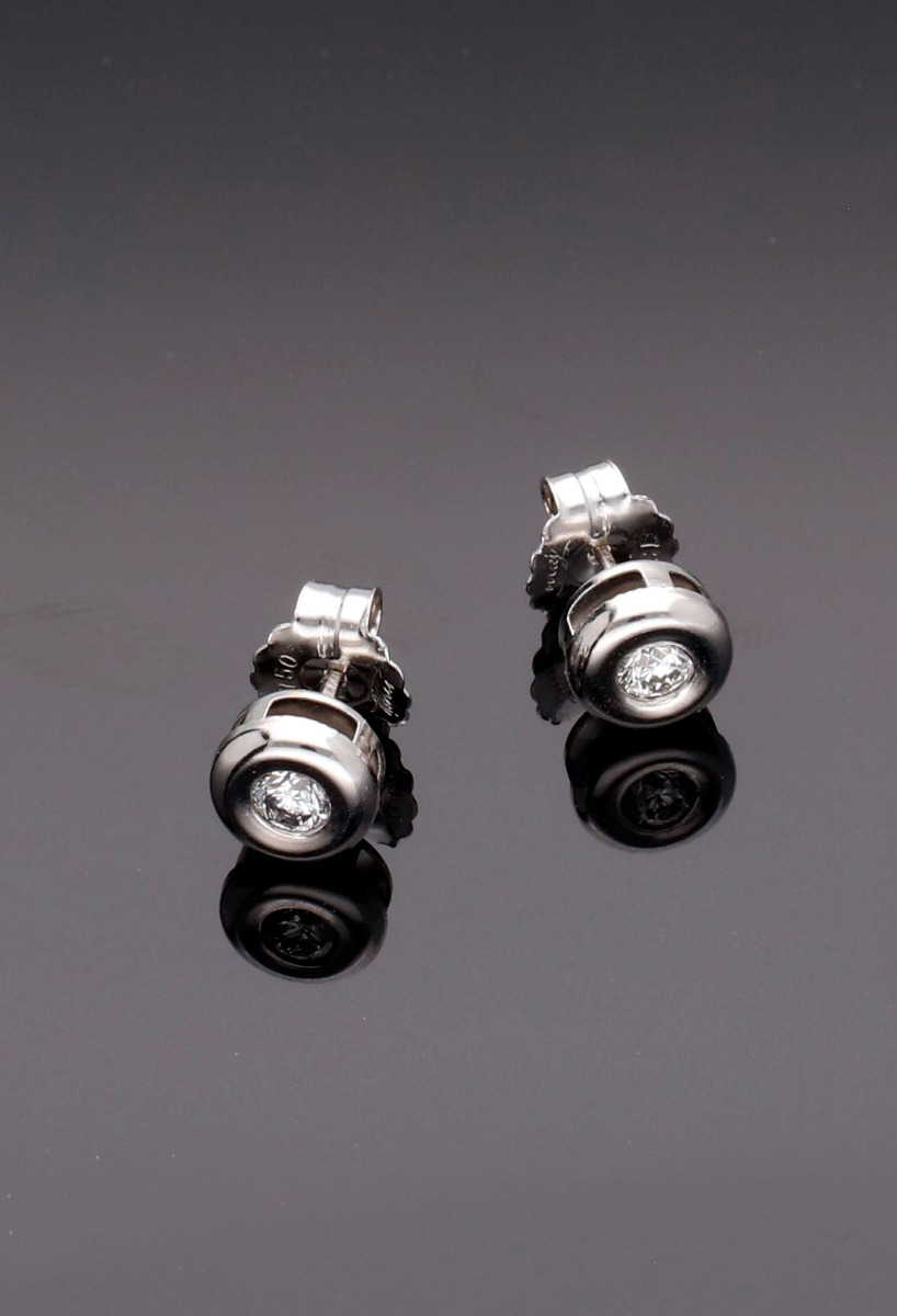 Pendientes de oro blanco con diamantes, sentirse elegante a la vez que discreta y poder llevar unos aretes perfectos para todo tipo de situaciones es posible con estos chatones de oro blanco y brillantes, elaborados en oro de primera ley, 18 kilates y 750 milésimas, chatones con diamantes talla brillante y que se ajustan mediante sistema de presión.
