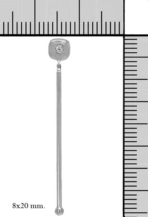 Pendientes oro blanco 18 kilates con diamantes, sencillo modelo formado por una barra o hilo recto colgando de un chatón cuadrado con palillo y sistemas de presión, se trata de un diseño moderno perfecto para utilizar en las ocasiones más variopintas y siempre acompaña perfectamente resultando elegante cuando es necesario o bien ser el más apropiado para un cóctel, incluso son ideales para novia.