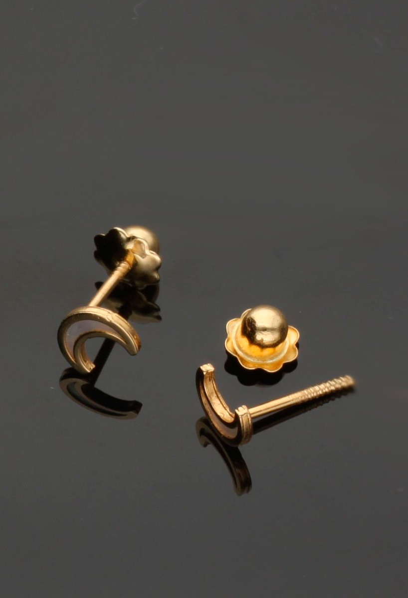Pendiente bebé oro y nácar forma media luna, aretes con forma de media luna creada a partir una pieza de nácar biselada por oro amarillo de 18 kilates el tamaño de tan solo 3×5.5 milímetros los hace perfetos para ser utilizados por recién nacidas o niñas de corta edad, disponen de pernios rosca y tuercas reforzadas, un bonito y original regalo para que te recuerde siempre.