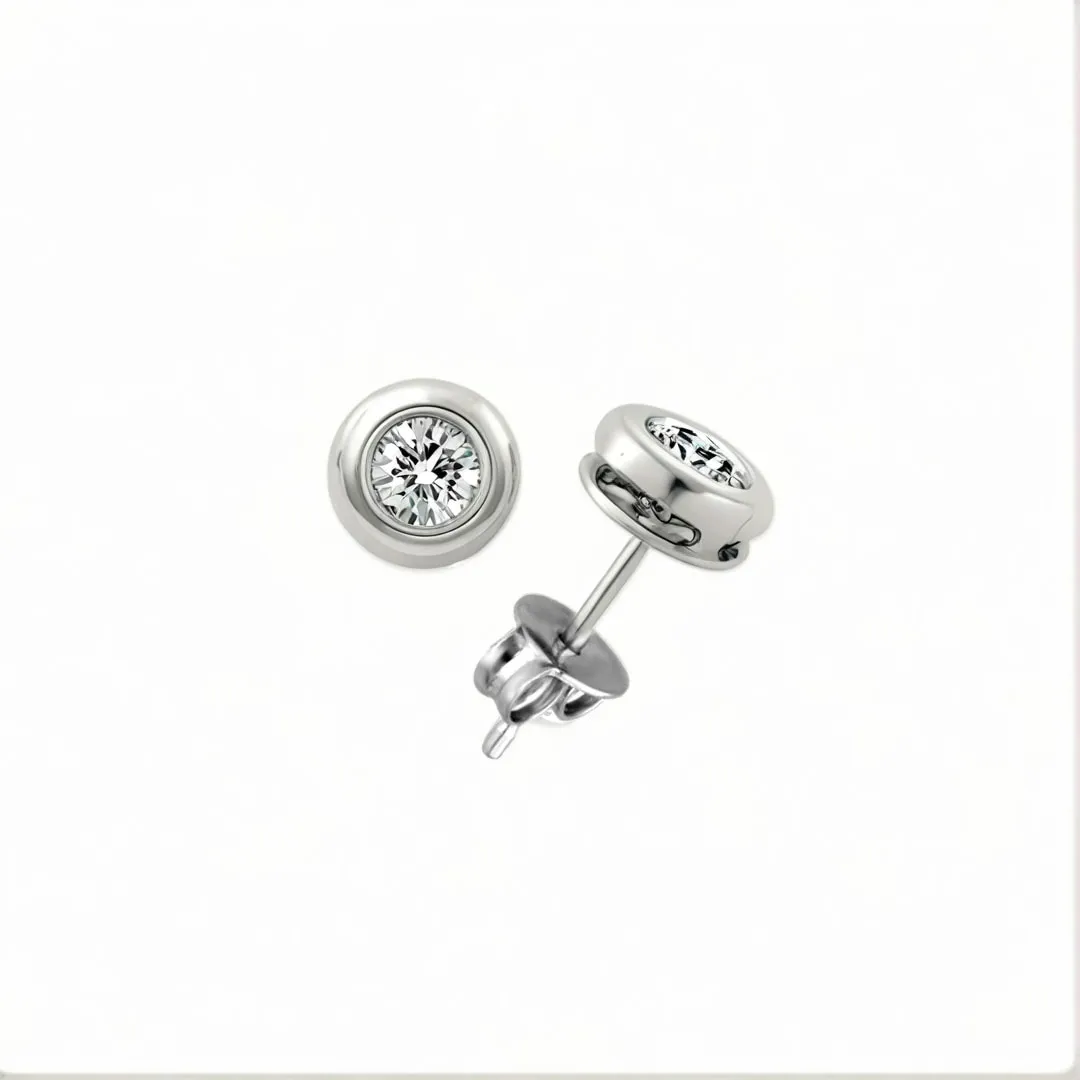 Pendientes de oro blanco de 18K con diamantes brillantes de 0,25 ct cada uno, montados en diseño chatón con bisel media caña y ventanas laterales que intensifican el brillo. Cierre seguro de presión y estilo discreto pero deslumbrante. Ideal para lucir elegancia en cualquier ocasión. ¡Solicita el tuyo ahora, quedan pocas unidades disponibles! Disponibles para envío inmediato.