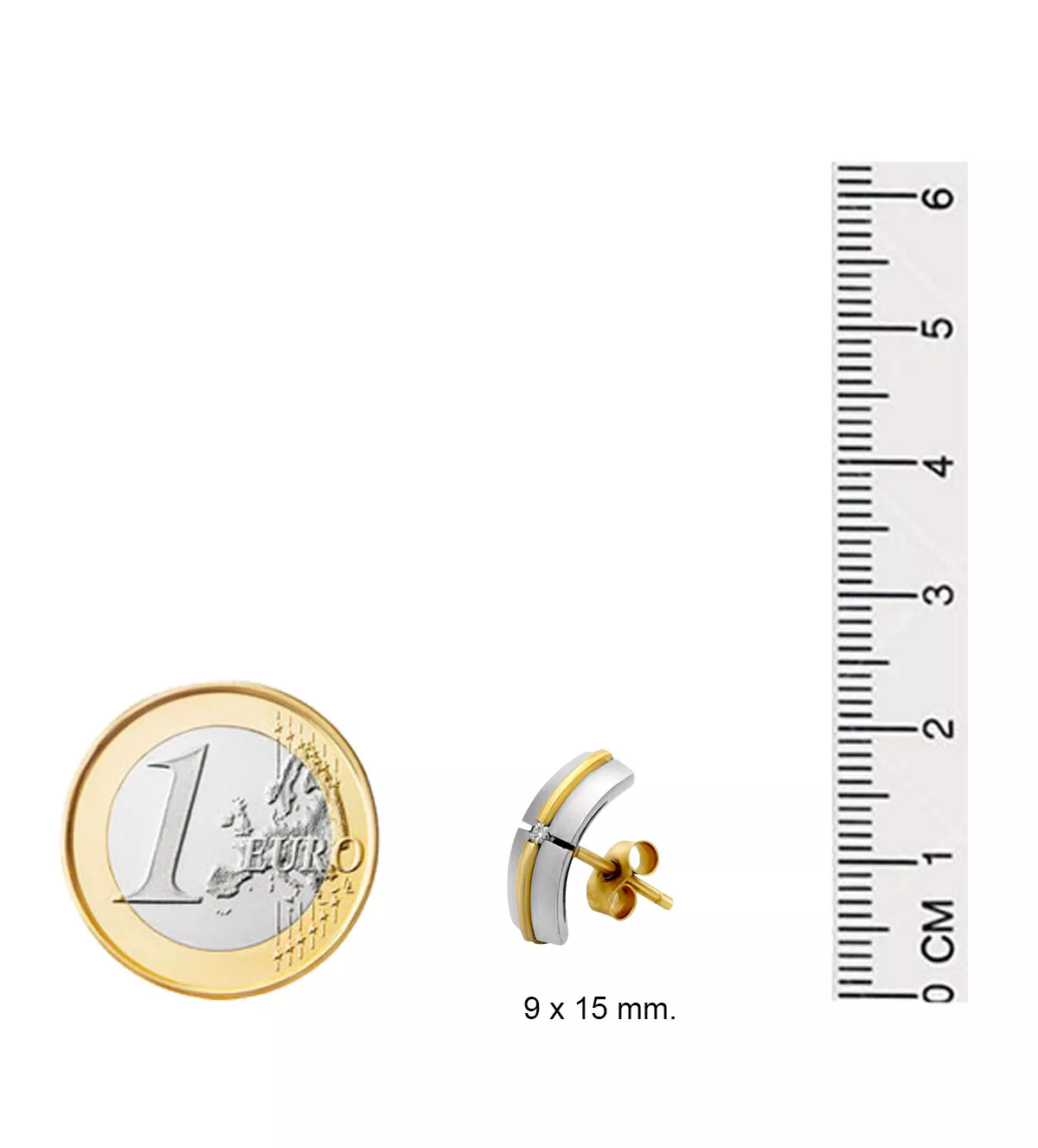 Los pendientes combinan acero con detalles en oro amarillo de 18K macizo, garantizando calidad y durabilidad.