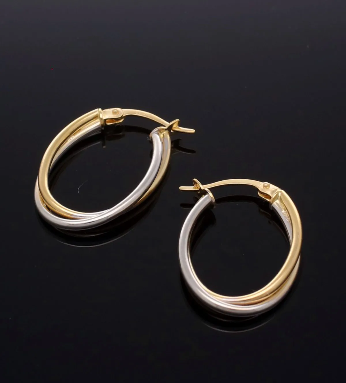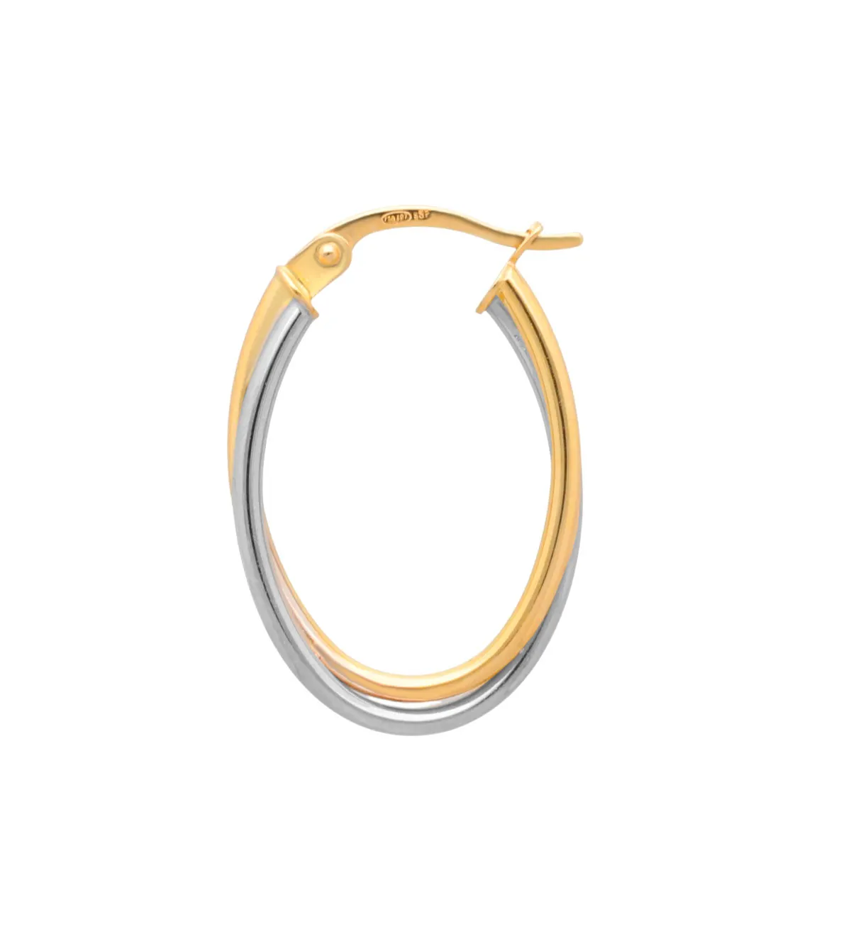 Pendientes de oro que combinan la elegancia atemporal con un toque moderno. Elaborados en oro bicolor de 18 kts, su diseño ovalado con cierre de ballestilla anclada en U un cierre cómodo y seguro que aporta estilo y comodidad en todo momento. Ideales para realzar cualquier look, desde el más casual hasta el más sofisticado. Aprovecha esta novedad con descuento especial y dale a tu joyero una pieza única. ¡Cómpralos hoy y recíbelos de inmediato! Stock muy limitado.