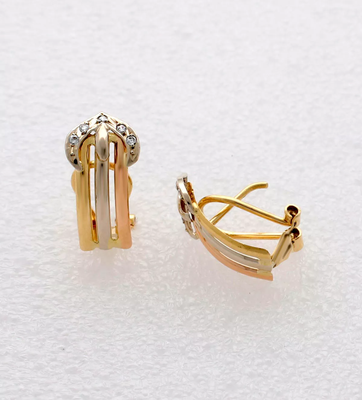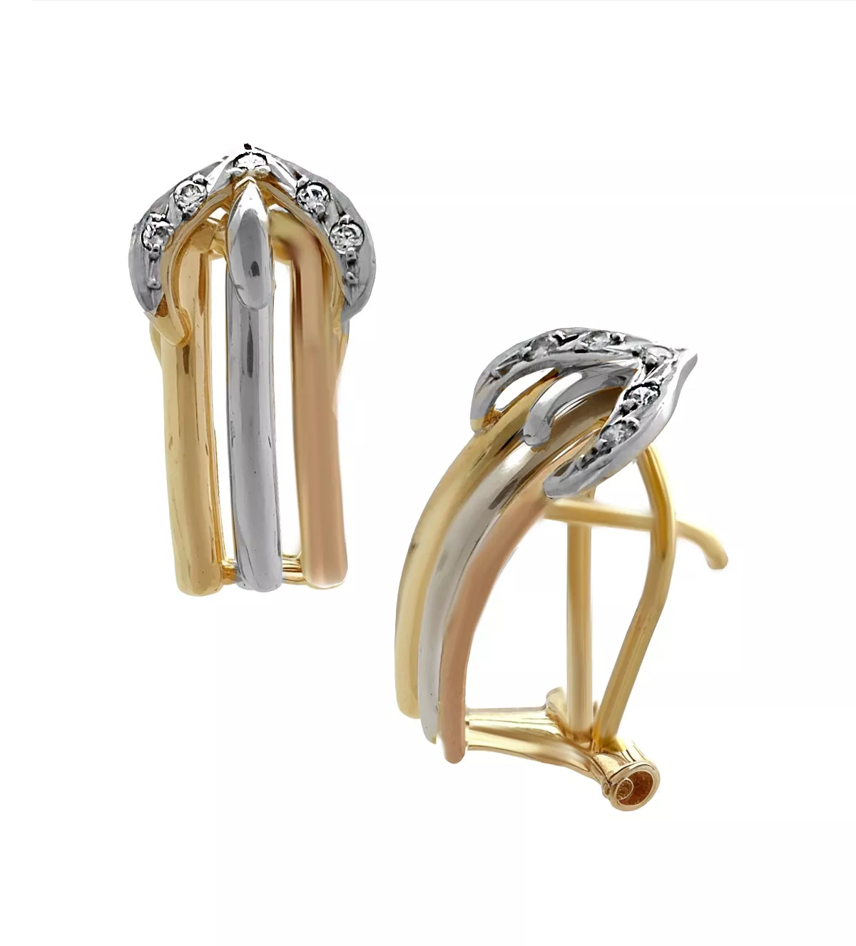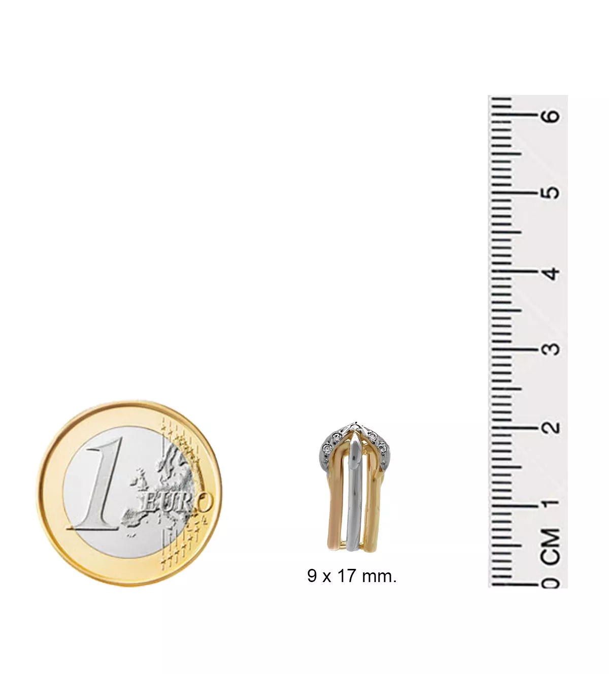Pendientes de oro “Tricolore” en 18 kilates: Un diseño clásico que nunca pasa de moda. Estos elegantes pendientes, acentuados con circonitas en la parte superior y un cierre tipo omega para mayor seguridad, realzan la belleza de cualquier mujer que los lleve. Perfectos para tu colección, aprovecha nuestro descuento especial ÚLTIMA UNIDAD antes de que se agoten. ¡Haz tu mejor compra ahora!