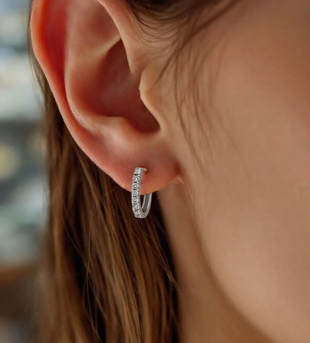 Aros de oro blanco 18K con acabado rodinado de alta gama.