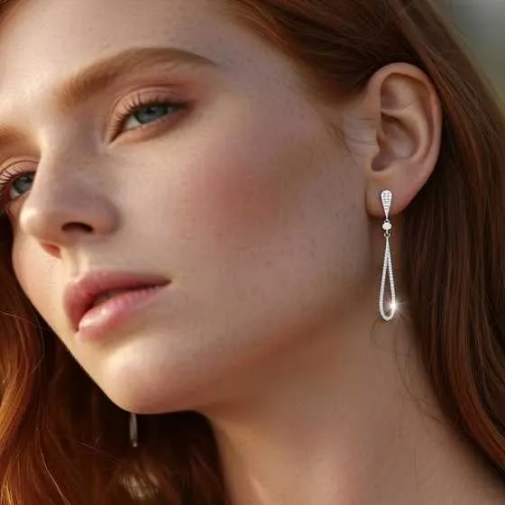El pavé de diamantes cubre toda la superficie, logrando un efecto de brillo continuo que aporta lujo y delicadeza. Este diseño estiliza el rostro y aporta verticalidad, convirtiéndolos en una elección ideal para quienes buscan una joya favorecedora y con gran presencia.
