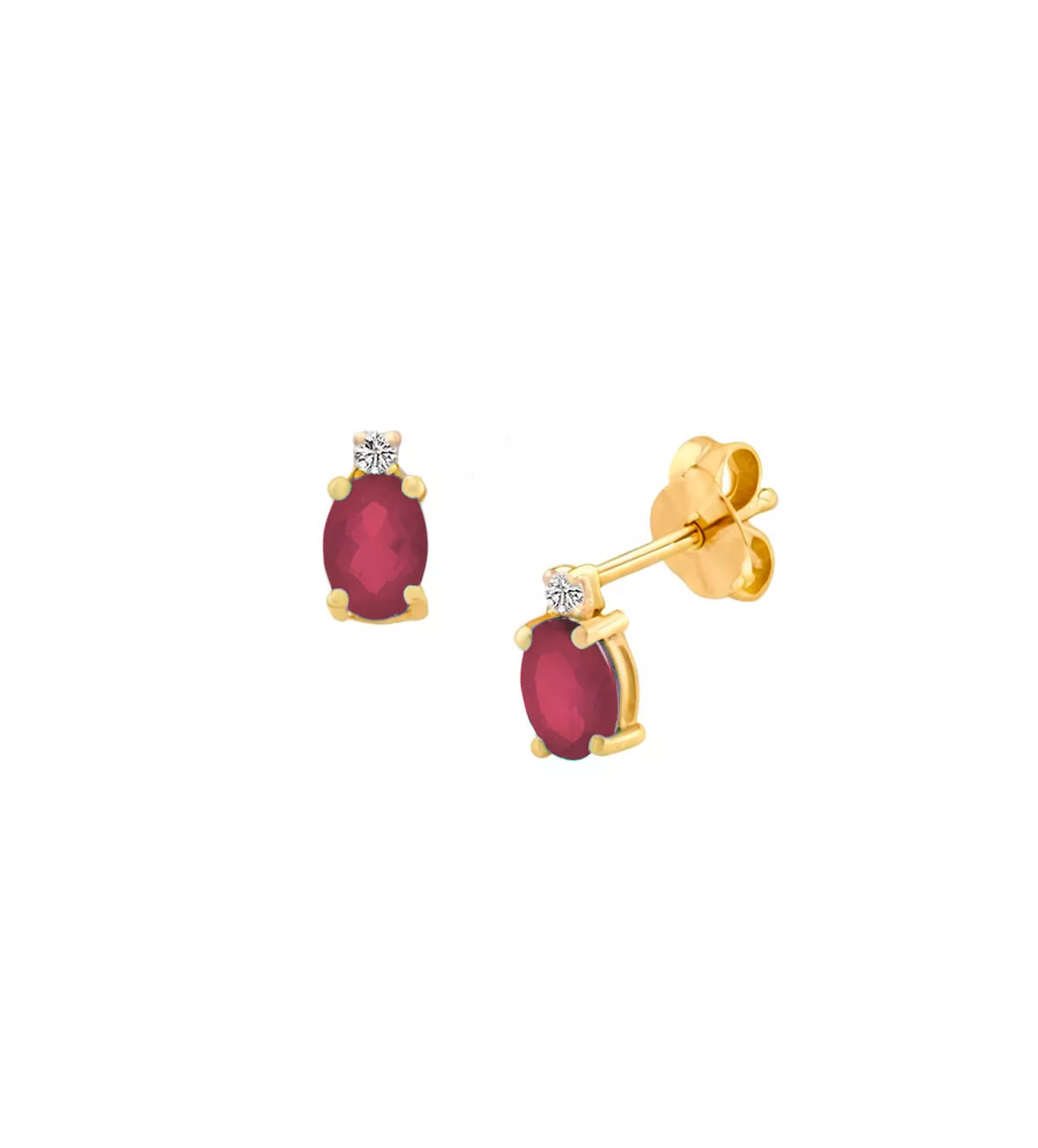 Lo pequeño se hace grande con estos preciosos pendientes que conjugan el oro amarillo de primera ley con un rubí oval y un pequeño brillante.
