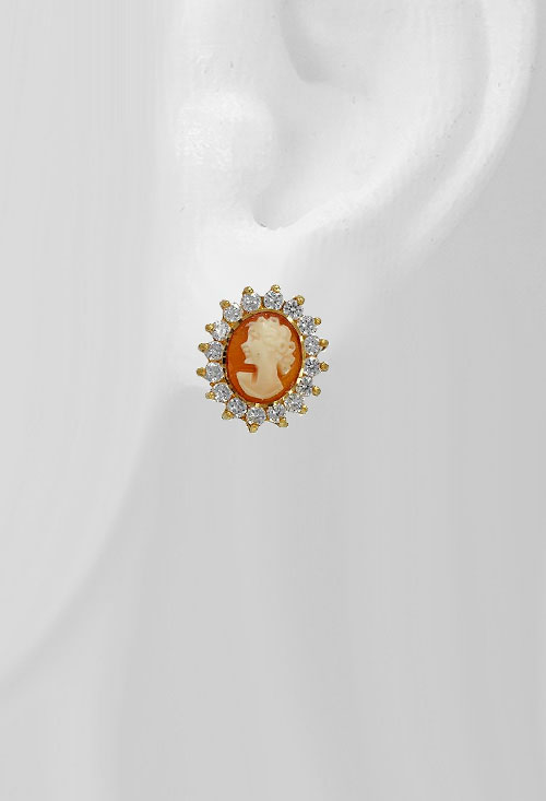 Pendientes oro amarillo 18 ktes y camafeo. 005_14-346
