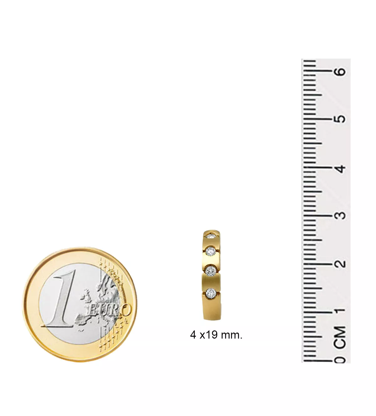 | Características Piedras | 8 diamantes talla brillante de 0,045 quilates color H y pureza SI, en total 0,36 quilates, |