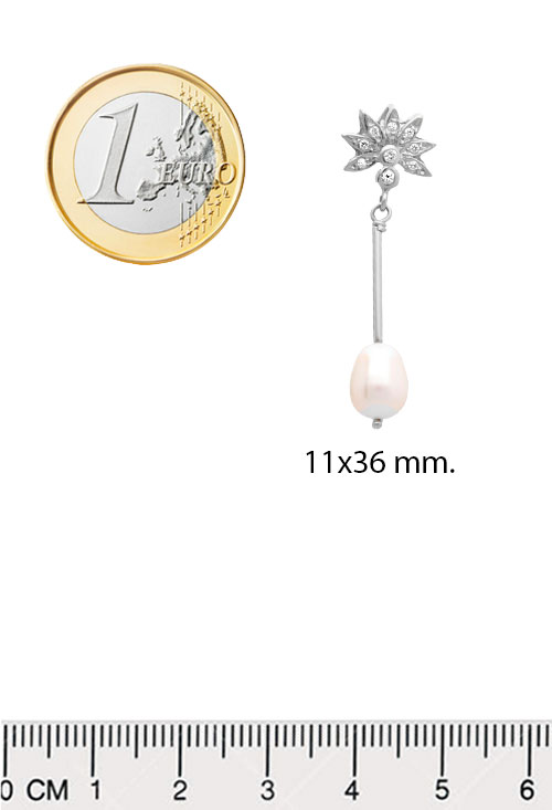 Pendientes oro blanco 18k largos con perlas 139_0014-P-OB