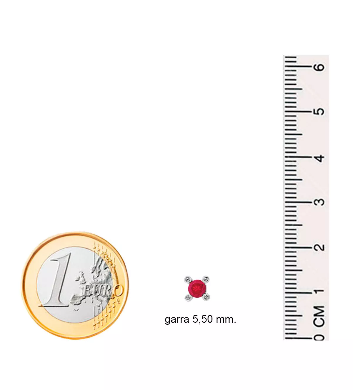 Los pendientes de oro blanco de 18 kilates con rubíes y circonitas son una joya que combina lujo y delicadeza en un diseño único. Con un montaje en garra de cuatro patas adornado con circonitas, estos pendientes logran un efecto brillante y sofisticado. Su tamaño de 5,50 mm los hace discretos, pero con un brillo que atraerá todas las miradas.