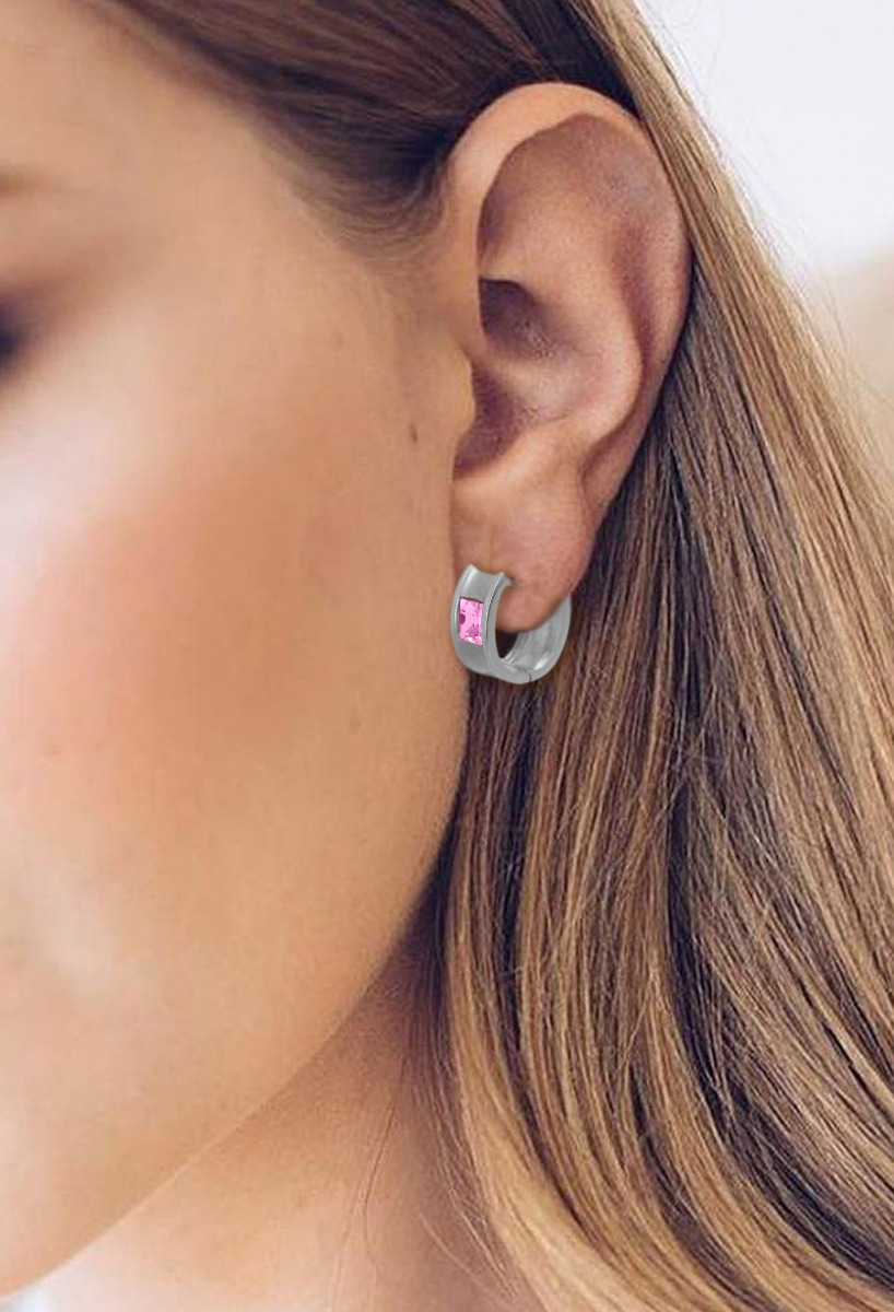 Original modelo de pendientes tipo arete realizados con oro blanco de primera ley 18 kilates y amatistas, una banda rectangular cóncava formando un circulo con palillo ajustable como cierre y con un precioso motivo en su parte frontal que nos muestra una preciosa piedra tallada en cuadrado de color morado o amatista engastada a ras en el interior de la banda, es un pendiente de diseño que pese a su sencillez y facilidad para combinar con cualquier estilo nunca pasa desapercibido aportando a su dueña un toque extra de elegancia y originalidad, ahora puedes comprarlos en nuestra joyería online al mejor precio posible.