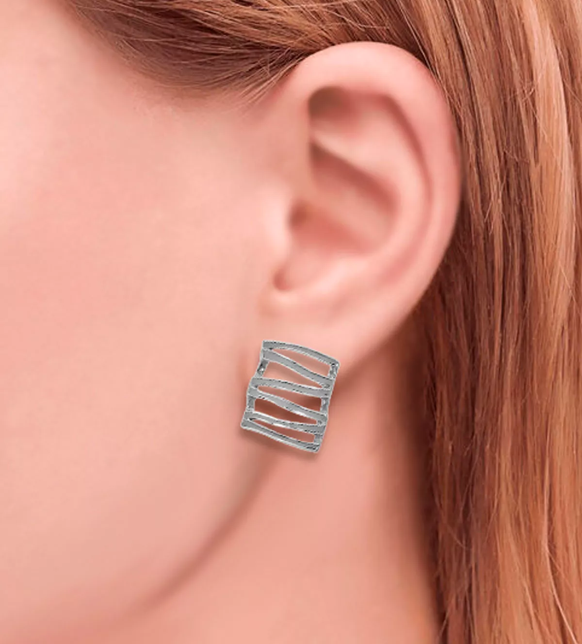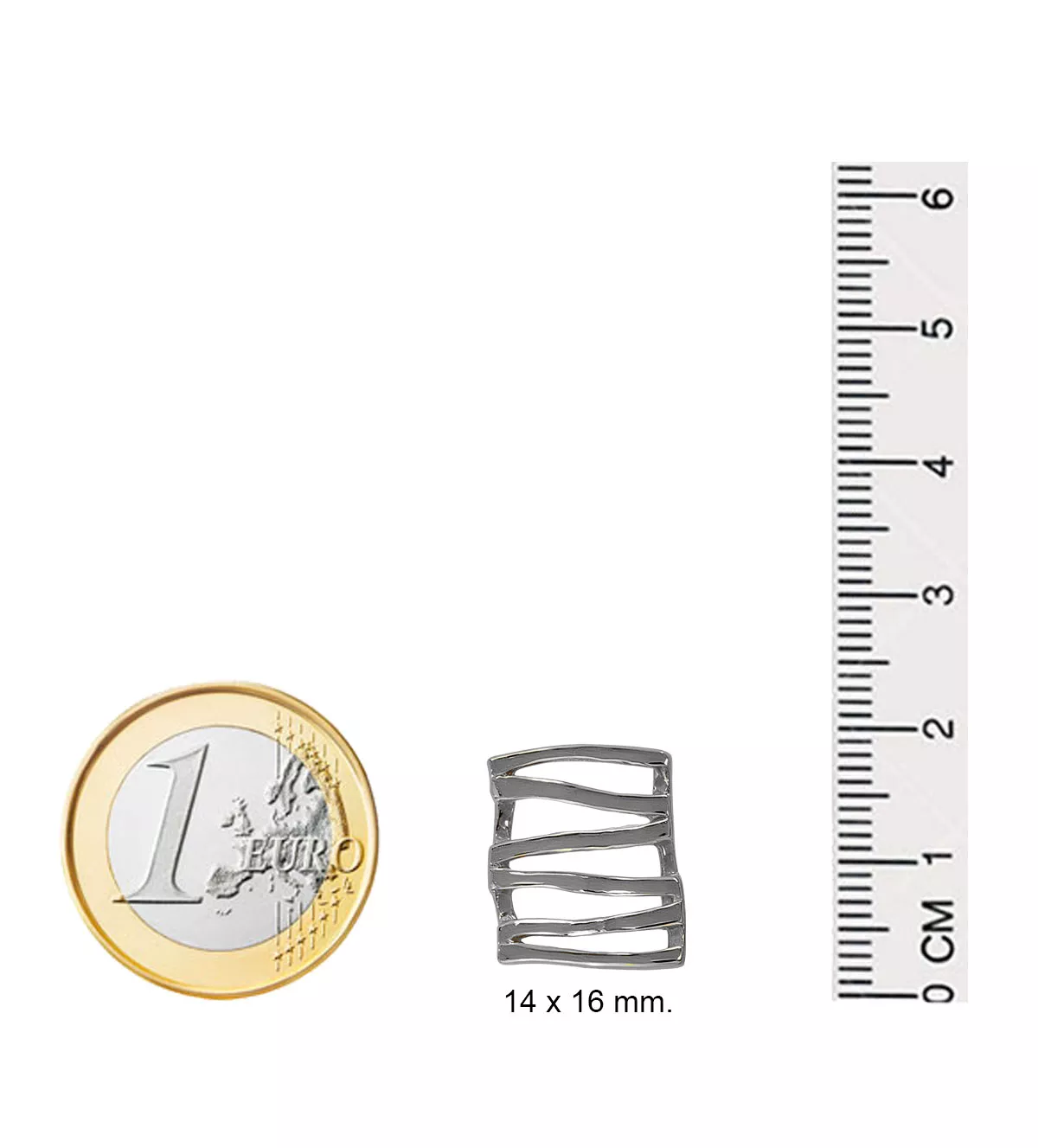 Los pendientes de plata con forma de cercado campestre irregular combinan originalidad y durabilidad en un diseño único. Fabricados en plata de ley de 925 milésimas y sometidos a un proceso de rodinado para aumentar su brillo y resistencia, estos aretes de 14 x 16 mm son perfectos para cualquier ocasión. Su cierre de presión asegura comodidad y seguridad.