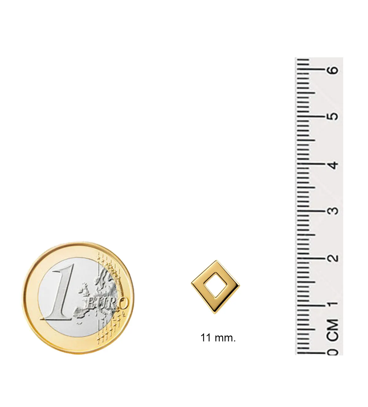 Los pendientes tienen un tamaño de 11 mm de diagonal, lo que los convierte en una pieza compacta, ligera y muy versátil. Su peso aproximado de 1,90 gramos asegura comodidad absoluta incluso en uso prolongado. Gracias a su diseño ergonómico y su cierre firme, se adaptan a cualquier tipo de oreja y resultan ideales para quienes buscan complementos discretos pero con personalidad.