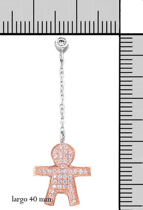 Pendientes largos en plata y circonitas, figura de niño, chapado en color oro rosa y empedrada de circonitas, colgando con una cadena de eslabón forzado, de un chatón redondo con cierre de presión, el mejor regalo para el día de la madre con un diseño muy actual, consulte sin compromiso disponibilidad de la gargantilla y la pulsera a juego.