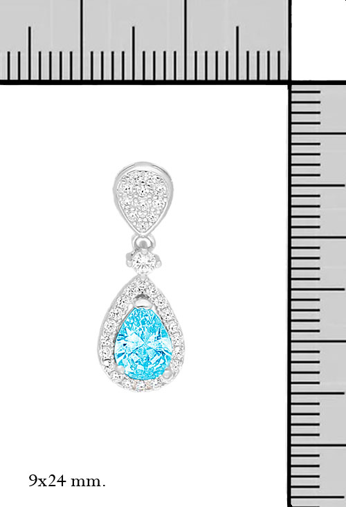Pendientes largos plata con circonitas y topacio azul para cóctel, precioso modelo muy elegante ideal para lucir en las ocasiones más especiales como fiestas y celebraciones, la piedra principales un topacio azul talla pera rodeado por una orla de pequeñas circonitas y todo el motivo colgando de un cuajo de circonitas tambien forma pera. pero dispuesto en forma invertida, el sistema de cierre son tuercas de presión.