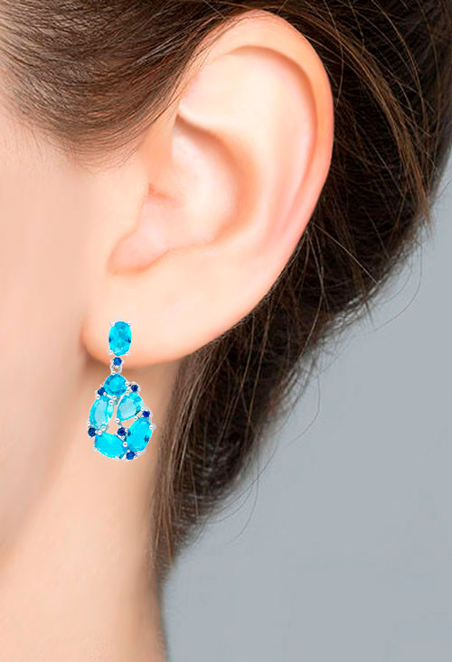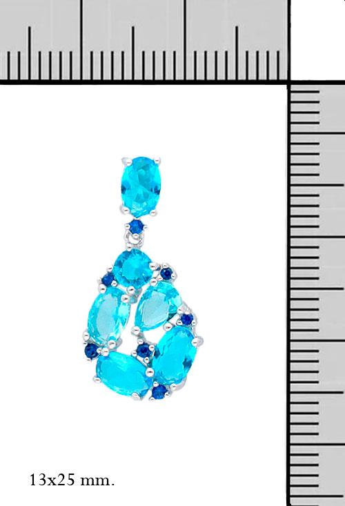 Pendientes largos plata con cristales checos tonos azules, diseño alta joyería en plata perfectos para hacerte resplandecer en las ocasiones más especiales como fiestas, bodas o cócteles, motivo en forma de pera formado por piedras engastadas en garras individuales que cuelga de una piedra del mismo tono azul en forma oval, se abrochan con sistemas de presión.
