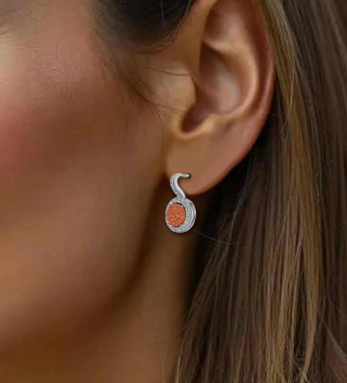 Me encantan estos pendientes, la drusa anaranjada brilla de vicio y le da un toque único a todo lo que me pongo. Son ligeros y se sujetan genial sin molestar. Justo lo que buscaba, súper contento con la compra.