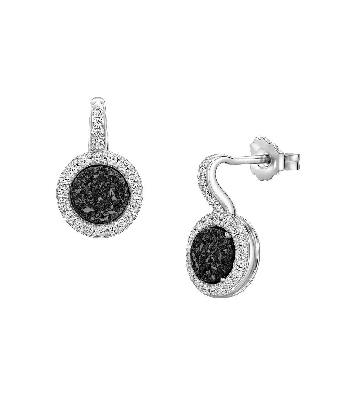 El diseño de estos pendientes de plata destaca por su estética moderna y llamativa. La ágata drusa, con su textura cristalina y sus variaciones cromáticas, convierte cada par en una joya prácticamente única. Su formato equilibrado permite que el pendiente tenga presencia sin resultar excesivo, logrando un estilo sofisticado y actual. Además, forman parte de una colección combinable que incluye colgantes y sortijas a juego en hasta seis colores diferentes, permitiendo crear conjuntos personalizados y coherentes.