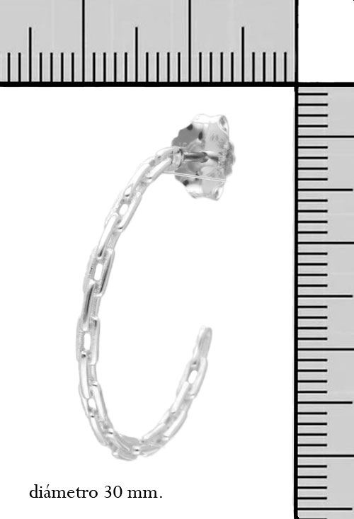 Pendientes plata criollas de eslabón forzado 30 mm de diámetro exterior, los eslabones miden 2,50 mm de ancho, el diseño esta inspirado en las cadenas de eslabones forzados, se trata de un pendiente de aro de tamaño medio grande que se abrocha con sistemas de presión, este tipo de pendiente resulta favorecedor en todos los casos resultando perfecto para lucir en todo tipo de ocasiones.