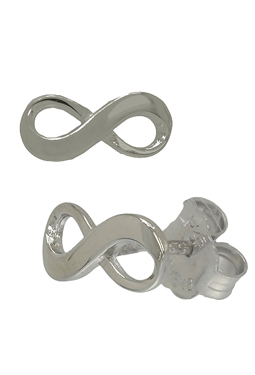 Pendientes de plata con forma de infinito, este motivo que durante años solo lo reconocíamos como un símbolo matemático desde hace ya unos cuantos ha ganado importancia y hoy es un símbolo de amor por todos reconocido, este modelo es liso con acabado en rodio, palillo y sistemas de presión, un modelo que por su tamaño es perfecto para utilizar en todo tipo de situaciones y de forma habitual.