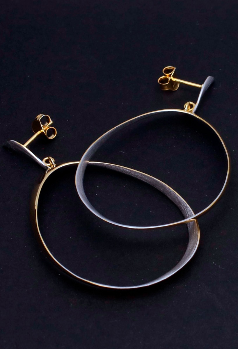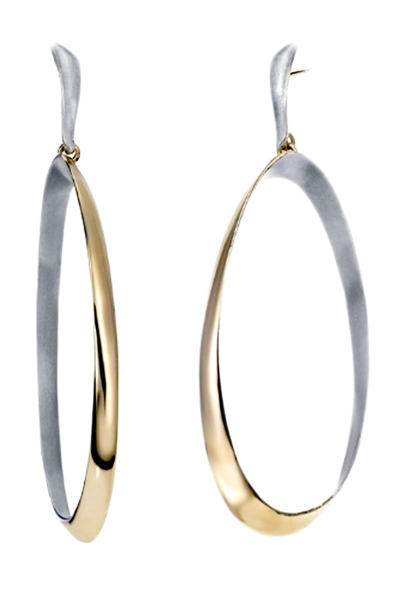 Pendientes plata Jorge Revilla, que pasada de pendientes, un aro oval de plano cóncavo colgando al bies de una forma de S. ¿originales? originales no, lo siguiente, diferentes, espectaculares y deslumbrantes, todo el mundo se fijara en ellos, son los peores para pasar desapercibida, no los lleves si quieres ir de discreta, se ajustan a la oreja mediante sistemas de presión, son una creación aparentemente sencilla pero llena de diseño en todas sus formas, diferenciate y aprovecha nuestro descuento online para hacerte con una joya de alta joyería.