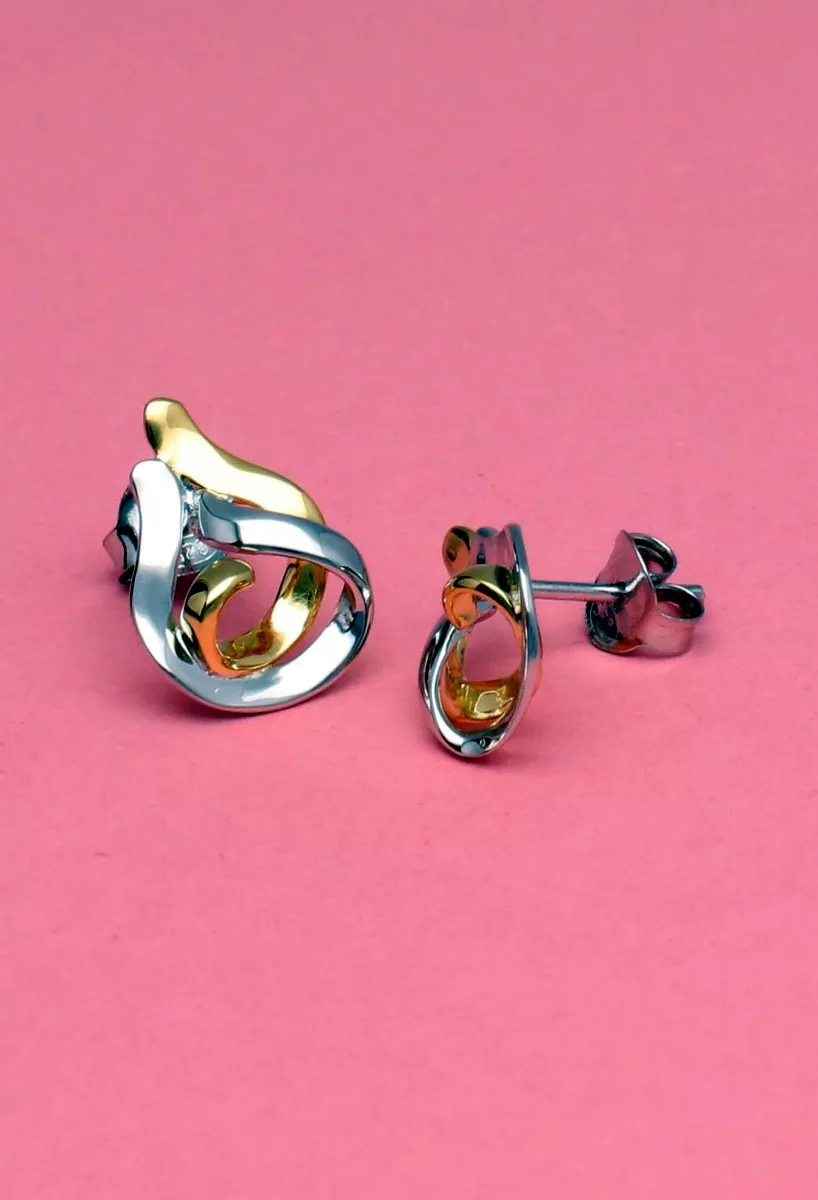 Pendientes plata Jorge Revilla, los aretes que buscas para que de forma discreta te sientas diferente por ese toque distintivo que aporta el diseño de Jorge Revilla, dos formas de corazón invertido una en plata su color superpuesta por otra en plata chapada forman este bonito pendiente que te podrás poner fácilmente utilizando sus sistemas de presión.