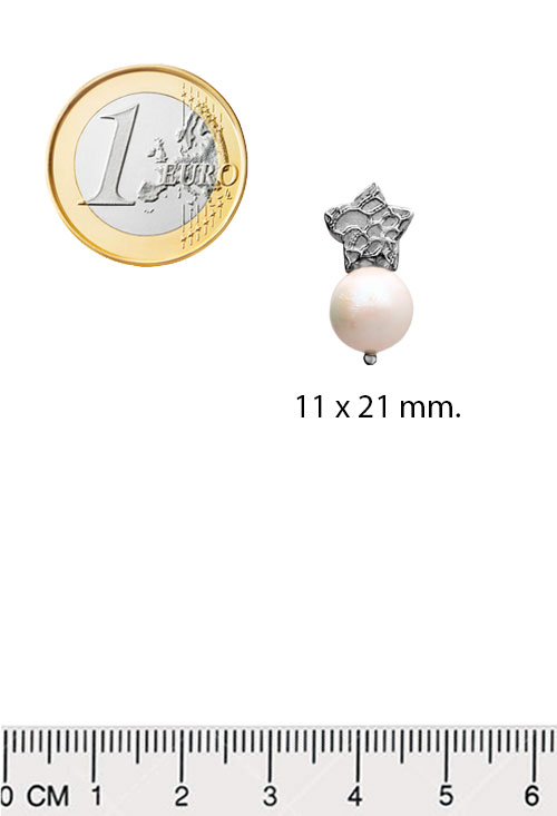 Pendientes plata perla cultivada, llevandololos puestos te sentiras una mijer especial porque con un pendiente clásico iras a la vanguardia de la moda, este diseño mezcla ambas cosas lo clásico por utilizar una magnifica perla cultivada con lo más progre, una estrella de cinco puntas de acabado mamposteria, los pendientes utilizan sistemas de presion para que puedas llevarlos perfectamente fijados al lóbulo de tu oreja.