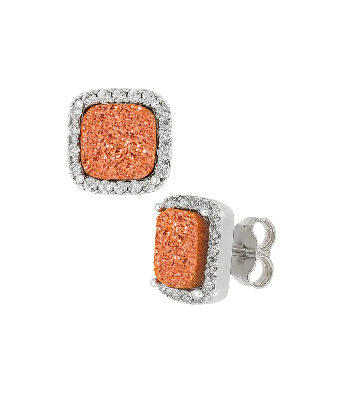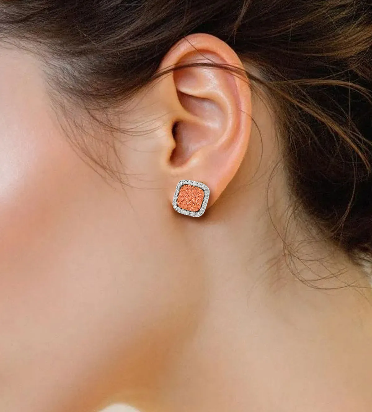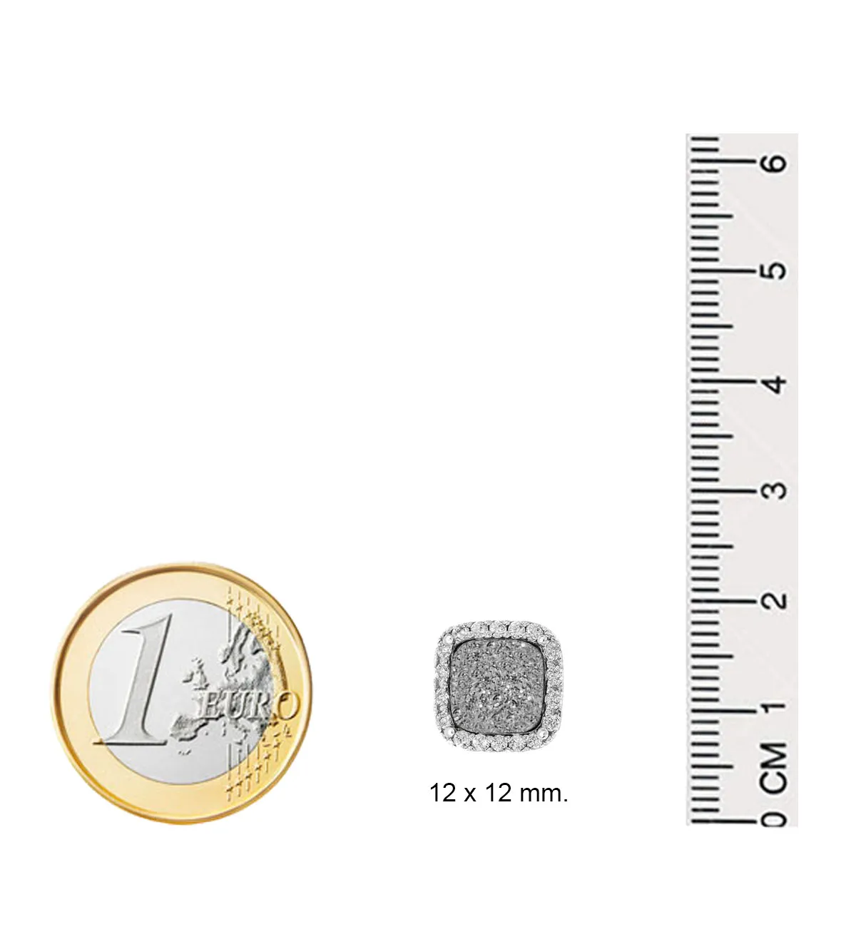 El diseño cuadrado de 12×12 milímetros aporta carácter y modernidad a la pieza, diferenciándola claramente de los formatos tradicionales. La combinación entre la estructura geométrica y la irregularidad natural de la drusa crea un equilibrio visual atractivo y elegante.