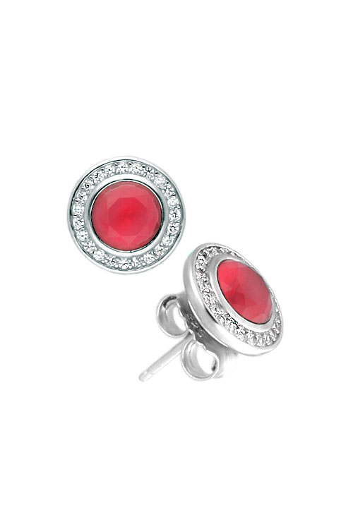 Pendientes plata y circonitas con simil rojo rubí modelo orla