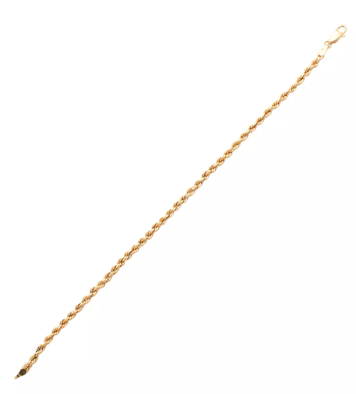 Pulsera de oro amarillo de 18 kilates con diseño tipo cordón salomónico y longitud de más de 19 cm, ideal para uso unisex. Cuenta con un cierre de mosquetón que ofrece gran seguridad y comodidad.