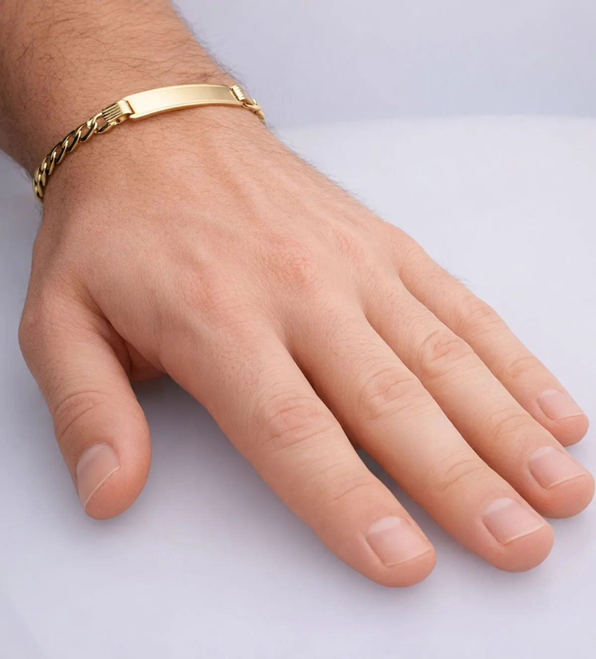 Esta pulsera de oro ha sido creada para hombres que valoran las joyas con presencia, significado y durabilidad. Se trata de una pieza sólida y maciza que combina un diseño clásico con un toque personal gracias a su chapa grabable. Es una joya pensada para acompañar durante toda la vida, convirtiéndose en un símbolo de identidad, recuerdos y estilo propio.