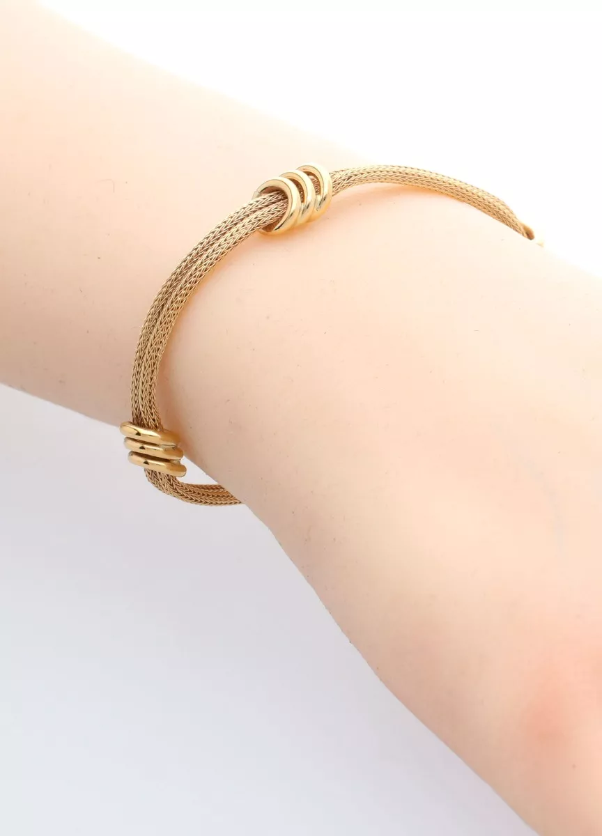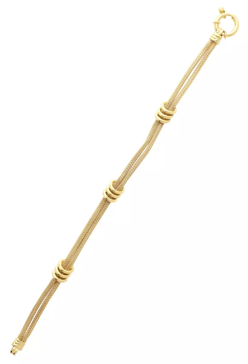 Pulsera oro 18 ktes para mujer doble cordoncillo italiano, os mostramos un precioso diseño italiano de Pulsera de Oro Amarillo 18 Kilates, diseñada especialmente para mujeres elegantes y sofisticadas. Este precioso modelo cuenta con dos cordones de esterilla italiana, cuidadosamente unidos por tres motivos gallonados que añaden un toque único muy especial. Confeccionada con el más puro oro de 18 quilates, esta pulsera te brinda una calidad excepcional y duradera. Su cierre tipo marinero asegura su ajuste perfecto en tu muñeca, garantizando comodidad absoluta durante todo el día.