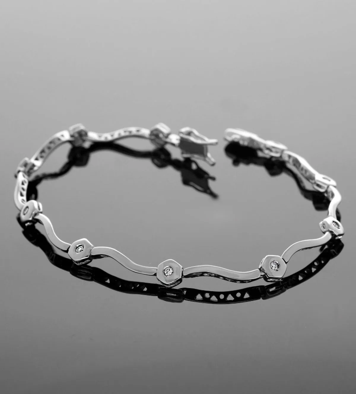 Pulsera de oro blanco 18k con diamantes en chatones hexagonales 231_W788B