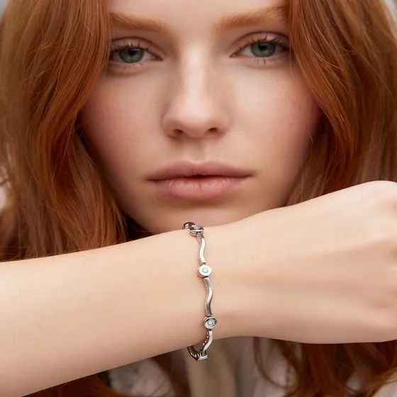 Con una longitud cuidadosamente estudiada, esta pulsera ofrece un ajuste cómodo y seguro en la muñeca. El ancho de los chatones proporciona presencia sin resultar excesivo, lo que la hace ideal tanto para llevar sola como combinada con otras joyas. Su diseño ergonómico permite un uso diario sin renunciar al confort.