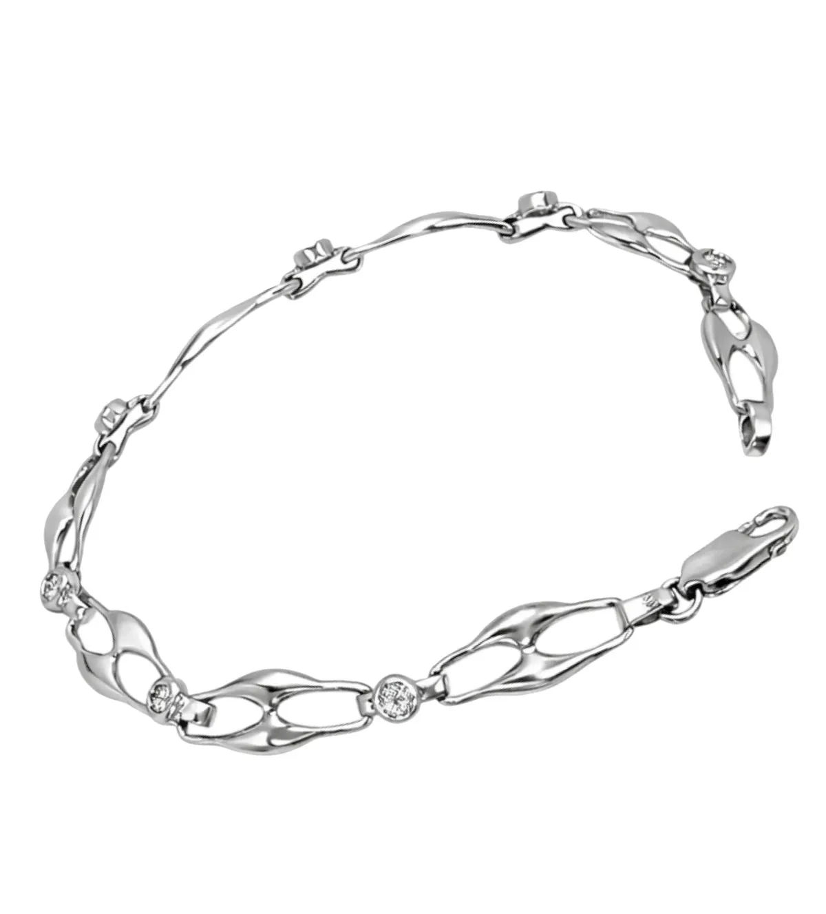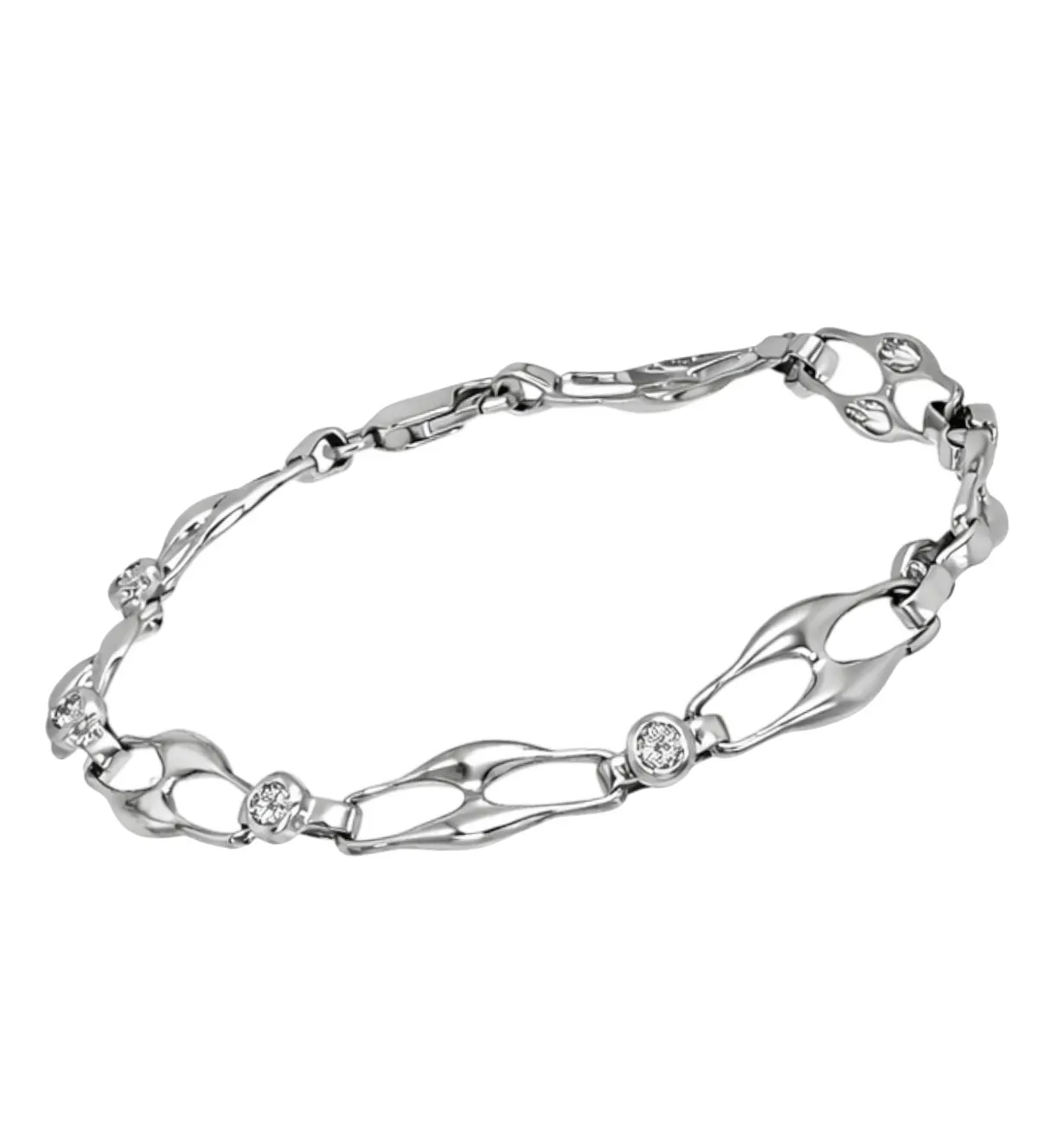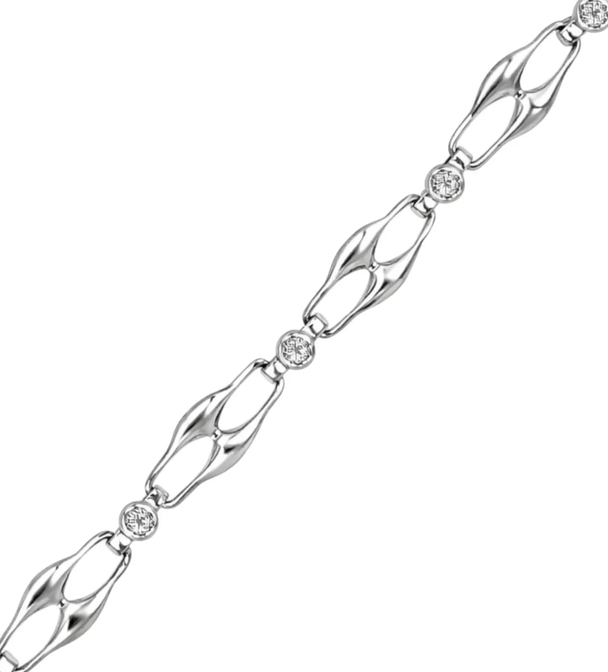 Pulsera de oro que deslumbra desde el primer instante por su elegancia atemporal y su brillo sofisticado. Elaborada en oro blanco con diamantes, su diseño de eslabones estilizados crea una joya exclusiva, refinada y llena de personalidad. Una pieza versátil que eleva cualquier look y se adapta tanto al día a día como a ocasiones especiales. Descubre la excelencia, el diseño exclusivo y la calidad superior pensados para mujeres únicas. Disponible para envío inmediato.