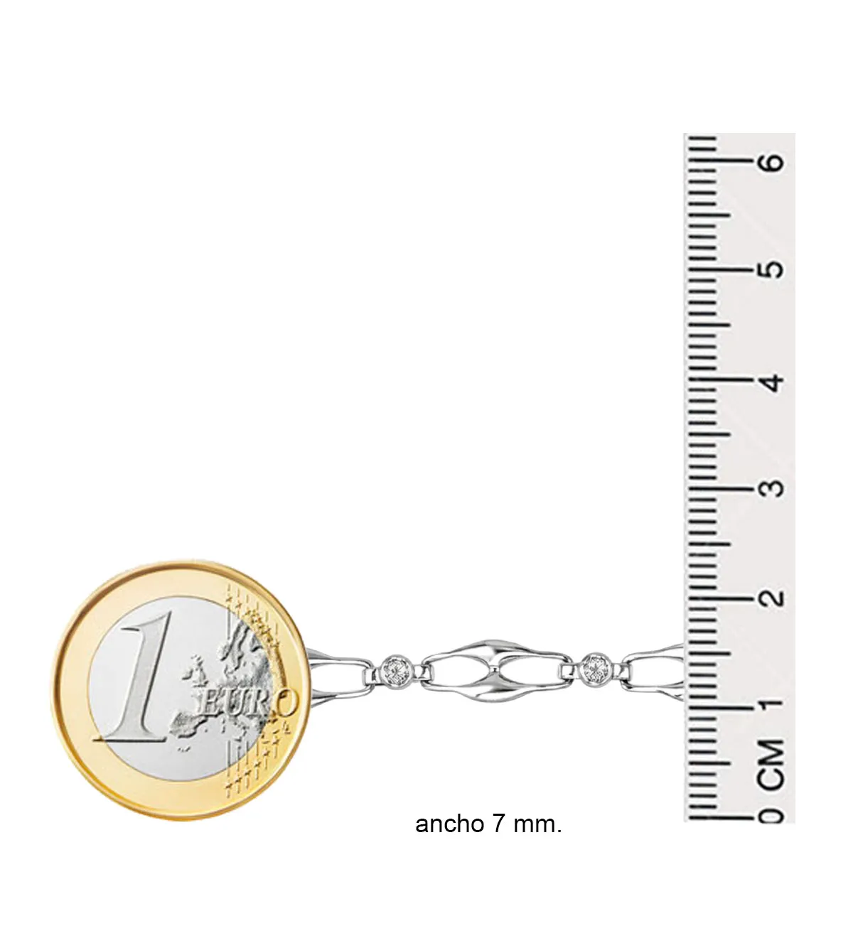 Esta pulsera de oro está fabricada en oro blanco de primera ley, garantizando un acabado impecable, duradero y resistente al paso del tiempo. El oro blanco aporta un brillo sofisticado y moderno que realza la luminosidad de los diamantes, creando una armonía visual perfecta.
