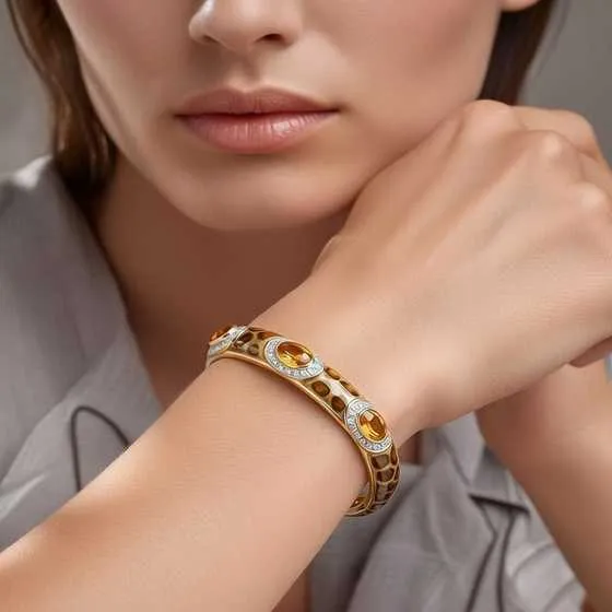 Pulsera de oro esmaltada con citrinos y diamantes: legado de lujo y distinción