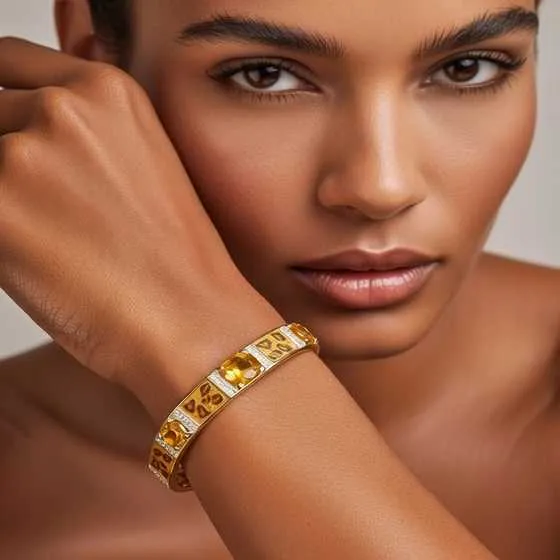 Pulsera de oro con citrinos y diamantes: lujo salvaje y elegancia atemporal