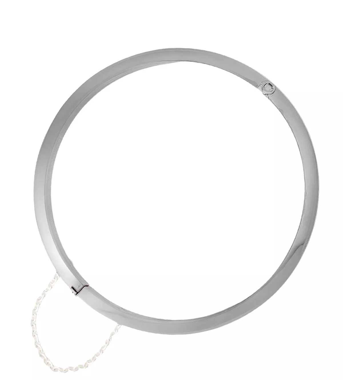 Luce elegante con nuestra pulsera de plata de aro rígido media caña de 8 mm de ancho. Este accesorio cuenta con un cierre de cajetín y lengüeta, además de una cadenilla de seguridad que garantiza un ajuste firme. Su acabado brillante añade un toque sofisticado, ideal para cualquier ocasión.
