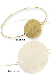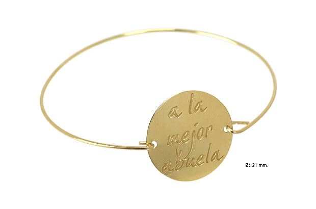 Pulsera de plata de ley rígida chapada en oro amarillo con motivo chapa circular con la inscripción “a la mejor abuela”. Regalo muy especial y asequible para nuestra abuela en su cumpleaños, día de la madre o cualquier otro evento.Ø chapa: 21 mm.Peso aproximado: 3,30 gr.Disponible también en plata de ley rodinada, modelo 041788-1-1-ABUELA. Venta online.